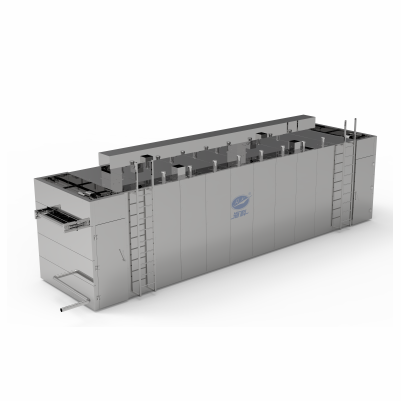设备主要?于?制品、?制品等休闲?品,主要对产品进?烘?/烘烤、?冷(选配?艺段),烘?采?蒸汽换热器进?换热,烘烤采?远红外线进?加热,产品在烘?区域、烘烤区域进?往返连续式输送,以达到所需要?艺时间,整体加热过程为?动检测温度恒温,?动检测湿度排湿,内部?能?动循环,节约能耗,选配?艺段